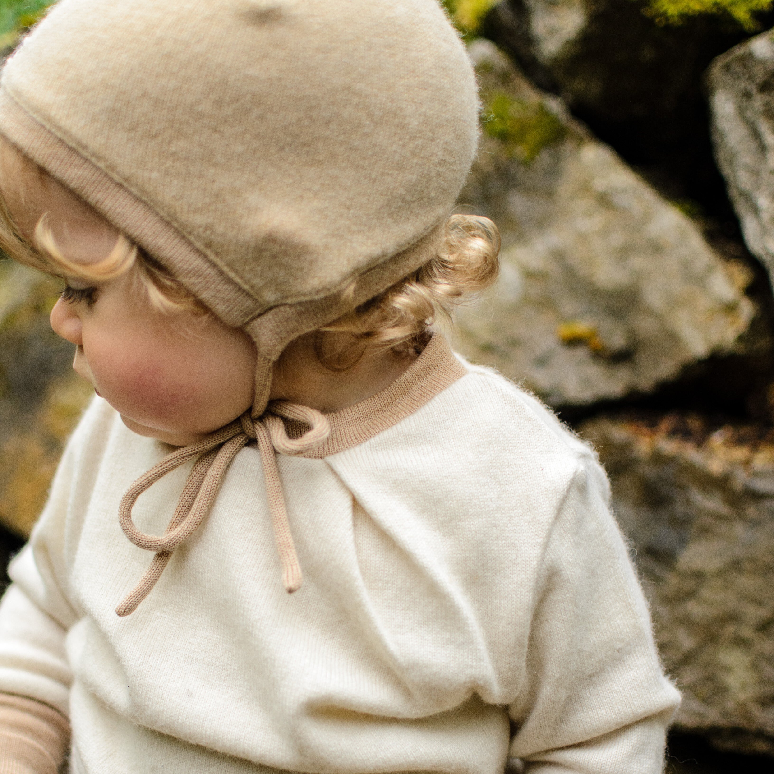 Die Bindemütze aus Kaschmirwolle ist optimal für die kühleren Jahreszeiten. Sie passt sich dem Kopf deines Babys perfekt an. Die Bänder sind gerade dick genug, um einfach gebunden werden zu können und trotzdem so zart, dass nichts drückt.