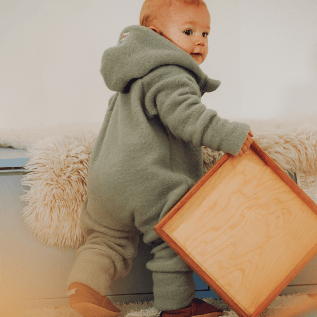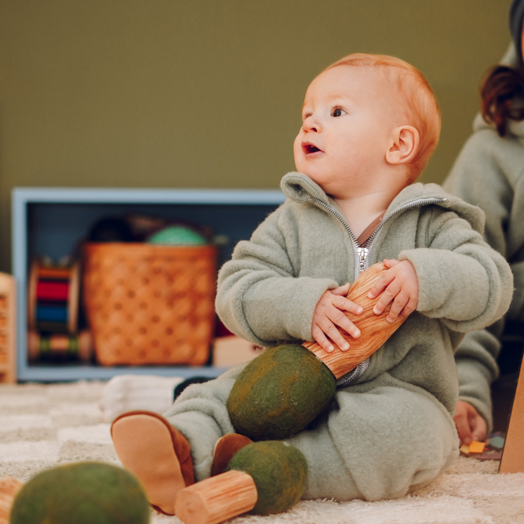 Woll- Baumwollfleece Zip Pullunder Seegras