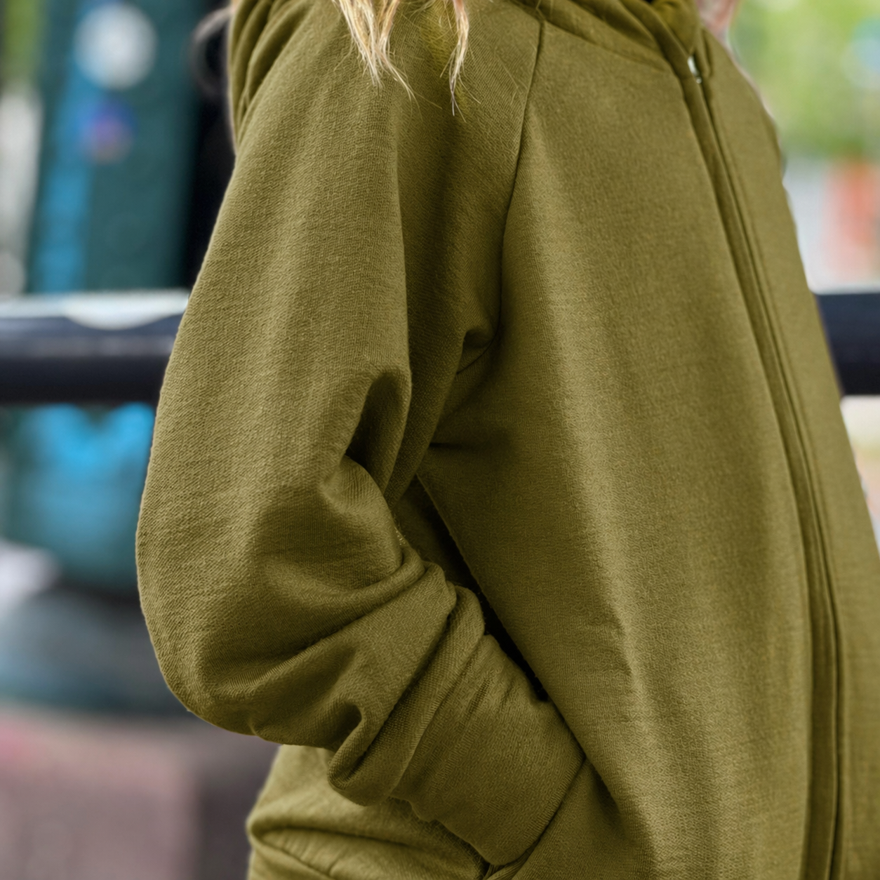 Diese Jacke ist gemacht für wilde Kindheitstage, kalte Morgen und Familien, die Kleidung wirklich nutzen. Unser Everyday Merino ist weich wie Kaschmir, angenehm auf der Haut und komplett plastikfrei. Und das Beste: Du kannst die Jacke genau so zusammenstellen, wie sie für dein Kind am besten passt – schlicht oder mit den Extras, die ihr im Alltag braucht.
