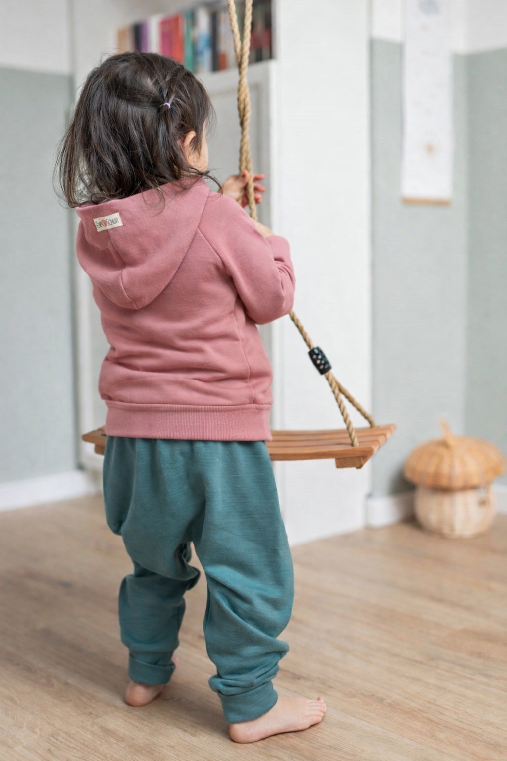Everyday Merino vereint das, was im Alltag selten zusammenkommt: Es ist weich genug für empfindliche Kinderhaut, gleichzeitig robust genug für Kita, Schule, Spielplatz und Sofa. Die Wolle gleicht Temperaturunterschiede aus, kratzt nicht und trägt sich über viele Monate hinweg angenehm.