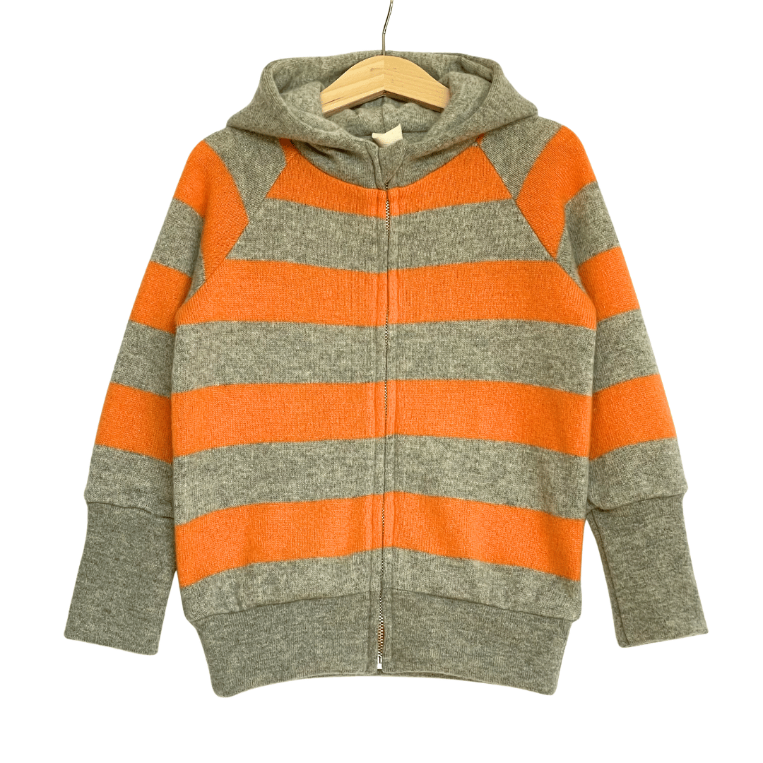 Genäht aus aussortierten Woll- oder Kaschmirpullovern ist jedes Modell ein absolutes Unikat. Für eine Jacke benötigen wir mindestens zwei aussortierte Pullover. Daher kann es zu leichten Farbabweichungen der Ärmel und/oder der Kapuze kommen.