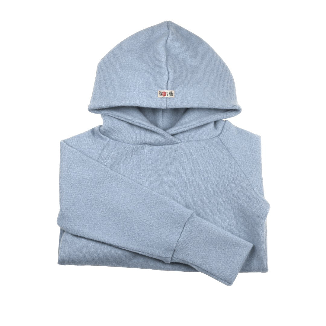Zeitlos und raffiniert, genäht aus feinen Kaschmir- oder Wollstoffen, nicht zu dick, schön weich und ideal für jeden Tag. Die langen Bündchen machen ihn zu etwas ganz Besonderem, sie legen sich angenehm um die Unterarme und wirken dadurch wie Pulswärmer. Der Hoodie fällt größen-gerecht aus. Du kannst dich also bei der Wahl der Größe an der Körpergröße deines Kindes orientieren. Da Kaschmir beim Tragen etwas auseinandergeht, fallen Hoodies aus diesem Material entsprechend größer aus als Hoodies aus Merino.