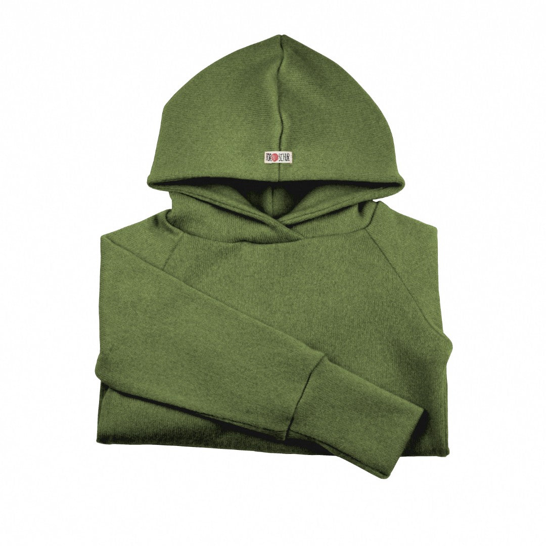 Zeitlos und raffiniert, genäht aus feinen Kaschmir- oder Wollstoffen, nicht zu dick, schön weich und ideal für jeden Tag. Die langen Bündchen machen ihn zu etwas ganz Besonderem, sie legen sich angenehm um die Unterarme und wirken dadurch wie Pulswärmer. Der Hoodie fällt größen-gerecht aus. Du kannst dich also bei der Wahl der Größe an der Körpergröße deines Kindes orientieren. Da Kaschmir beim Tragen etwas auseinandergeht, fallen Hoodies aus diesem Material entsprechend größer aus als Hoodies aus Merino.