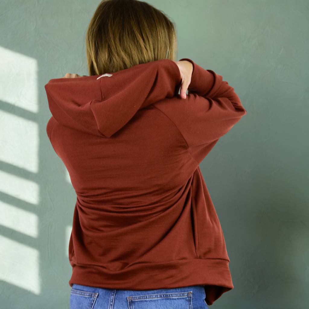 Genäht aus unserem bewährten Every Day Merino – 100 % Merinowolle, die sich weich wie Kaschmir anfühlt, ohne zu kratzen. Der Stoff ist robust, pillingarm und so gemacht, dass du ihn wirklich im Alltag tragen kannst: über dem T-Shirt, unter der Jacke, auf dem Sofa und draußen im Wind.